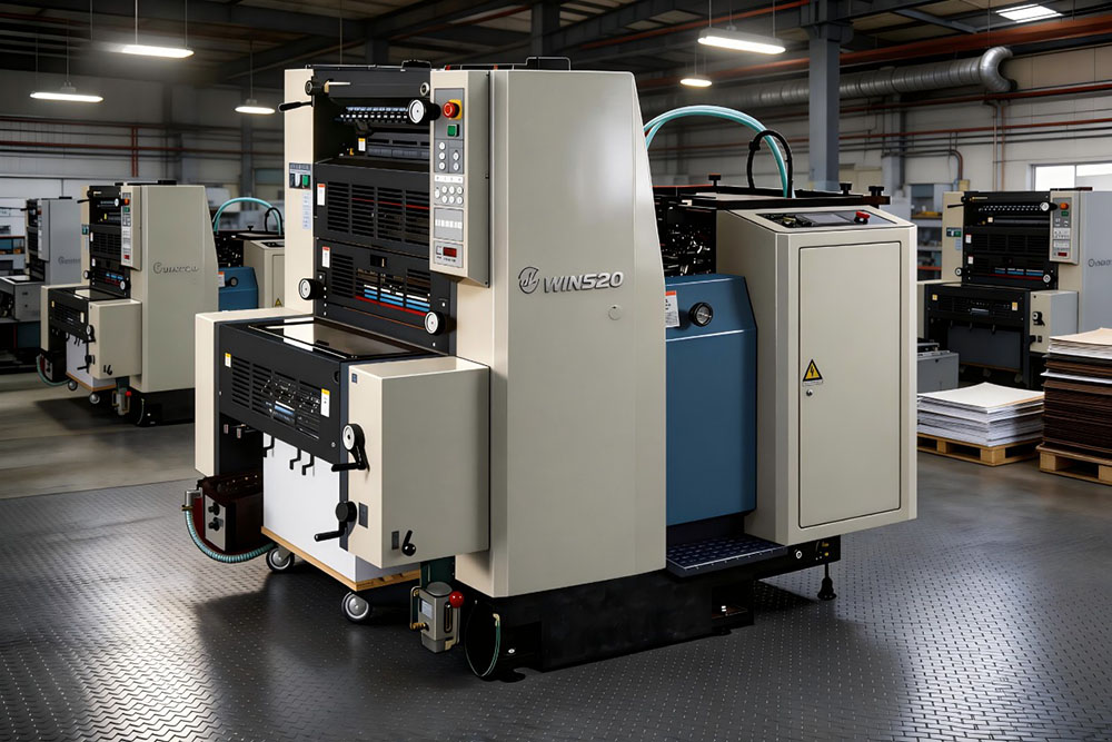 Velika enobarvna ofsetna tiskarska stiskalnica A3 z alkoholnim vlaženjem, opremljena s sistemom za vlaženje z alkoholom, je zasnovana tako, da ima strukturo stroja za težke obremenitve, mehanizem za podajanje papirja z vrtljivo roko, mehanizem za neprekinjen transport papirja in zobe prijemala z dvojno vzmetjo, zaradi česar je stiskalnica primerna za komercialno tiskanje in tiskanje embalaže. Uporablja zaslon na dotik z intuitivnim vmesnikom, ki ga operaterji enostavno uporabljajo za programiranje nastavitev in parametrov ter brisanje napak in dogodkov.